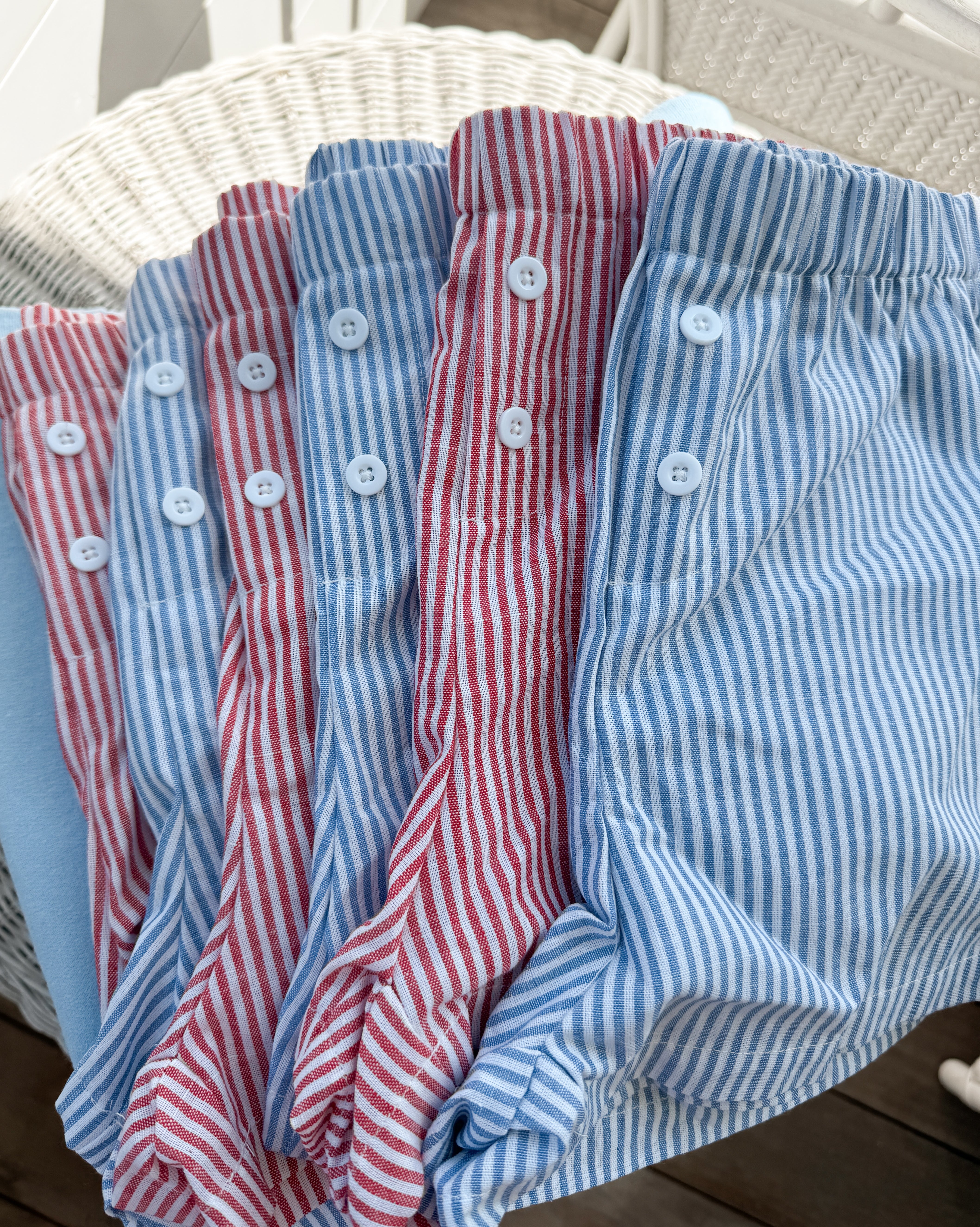 The perfect mix of comfy and cute, these red and white striped boxer shorts are a summer staple. Lightweight, breathable, and easy to throw on for beach days, lounging, or running errands. They pair perfectly with our Lobster Sweater or any oversized tee. Caroline is 5'3 and wears a size small — we recommend sticking with your usual size for a relaxed fit.